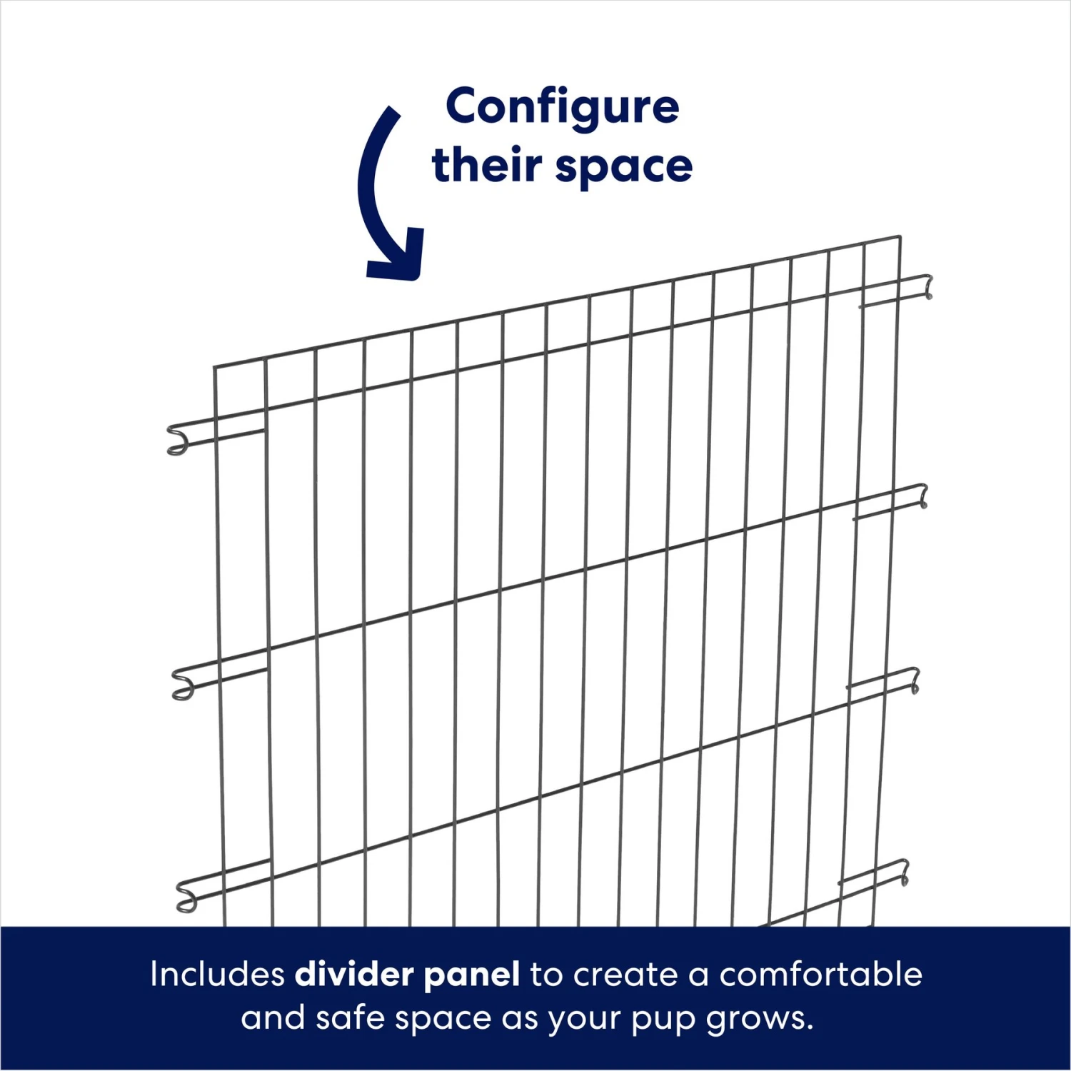 - Removable divider panel allows you to create a smaller space, so the crate’s size can be adjusted to accommodate your puppy as they grow, making it an essential accessory they’ll use throughout their life.